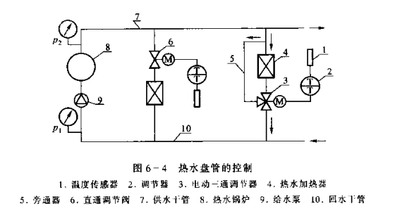 對熱(冷)水盤管進行控制,就是對供熱量進行調節.從而保持室內溫度的恒定。控制原理如圖6一4所示。