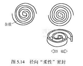 ①徑向“和柔性”密封如圖5.14所示,壓縮機的轉子渦盤與定子渦盤一般情況下通過十字聯接環葉合,并通過一定數量的嗎合點實現徑向的密封。而此傳動機構中,適當留有“游隙",使渦旋轉子在正常情況下,由于平衡塊離心力的作用,與定子實現密封嚙合。當有雜質或液體制冷劑被吸入時,則由于“游隙”的存在,使轉子出現平面位移,和定子的嚙合出“現縫隙,轉子向一側與定子分離而避免了發生雜質磨損和液體的“濕壓縮”的可能性。此種結構使停機時兩渦旋體稍有脫離,實現卸載起動。