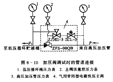 (5)加壓閥的調試。為調試需要,安裝三個壓力表如圖810所示.1指示的壓力,表2+指示主閥活塞腔壓力,表3指示加壓壓力。