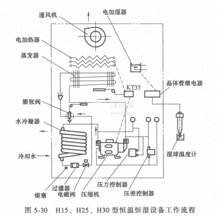 H15, H25, H30型恒溫恒濕設備工作流程如圖5-30所示。