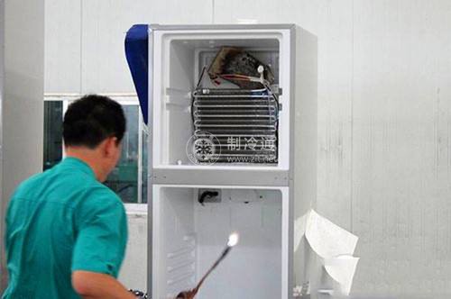 ①觀察電冰箱上、下蒸發器的結霜情況。制冷劑充注量準確時,上、下蒸發器表面結逢均勻,霜薄而光滑,用濕手接觸蒸發器表面有粘手感。若制冷劑充注量不足時,則蒸發器上結霜不勻,甚至只有部分結箱。對于制冷劑先進入下蒸發器然后到上蒸發器循環的電冰箱,會出現冷藏室溫度低,而冷凍室溫度降不下來的現象。若制冷劑充注量過多時,則蒸發器上結浮釘,冷凍室內的溫度達不到設計的溫度要求。