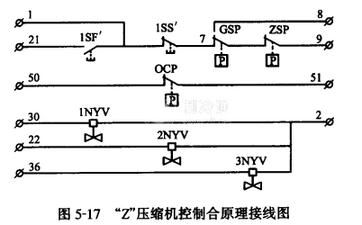 3.當氨壓縮機全電壓正常運行的同時。1NYV電磁閥失電,第一組氣缸(兩個高壓缸)上載, 2AKT時間繼電器得電開始延時。