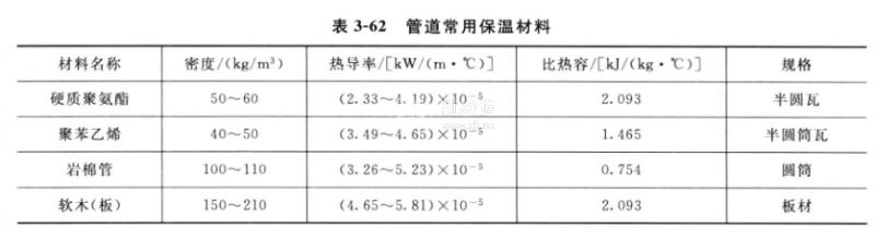 (1)常用保溫材料見表3-62.