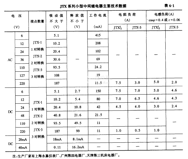 繼電器動作特性:交流電壓繼電器,在額定電壓85%以上能可靠動作;直流電壓繼電器,在20℃時,在額定電壓85%以上能可靠動作;直流電流繼電器,在額定電壓90%以上能可靠動作。在額定負荷下,能可靠地吸合10萬次,而不需調(diào)整。主要技術數(shù)據(jù)見表6-1。