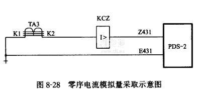 C.零序電流模擬量采取方法:零序電流模擬量取自零序電流互感器(3TA)二次側。可與零序電流繼電器(KCZ)串聯共用,其接線圖如圖8-27~8-28所示。