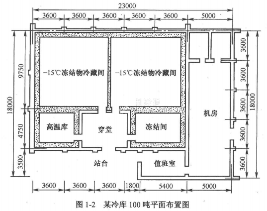 冷庫是專門用于對食品進行冷卻、凍結和冷卻物、凍結物冷藏及人造制冰與貯藏冰的冰庫的一種獨特建筑.按用途分,有生產性庫、分配性庫、綜合性庫、零售性庫和生活服務性庫;按庫體結構分,有土建庫、裝配庫(組合冷庫)等:按庫溫高低分,有高溫庫、低溫庫等。下圖所示是高層冷庫的外形,下圖所示為某冷庫100噸平面布置圖。
