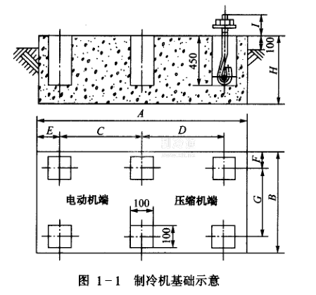制冷機基礎應建在實土上,施工前應將機座下的浮土挖深后,分層夯實。