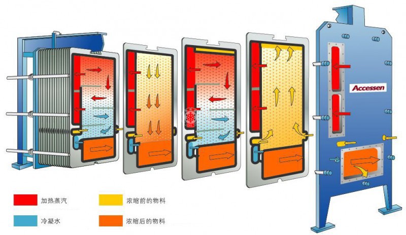 板式蒸發器構造和板式冷凝器相同,特別適用于冷凝器和蒸發器需要可逆變換的熱泵系統中。