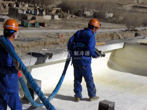 低壓空氣噴涂發(fā)泡是較普遍的一種成型方法。它是由低壓計(jì)量泵將反應(yīng)物料愉至噴槍,被壓縮空氣霧化噴射到被施工表面后發(fā)泡成型。