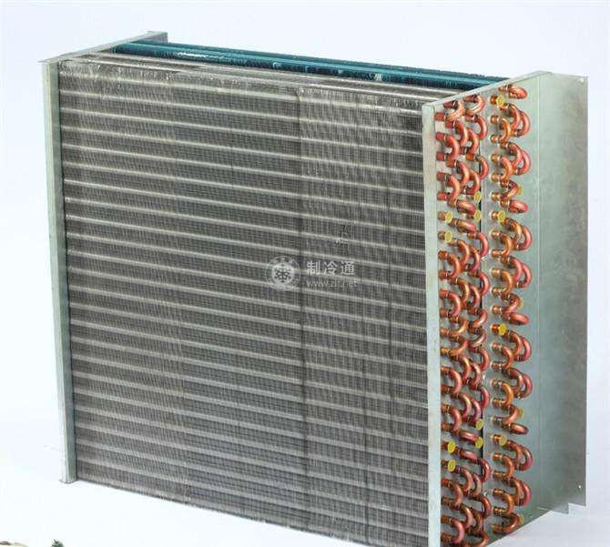 空氣冷卻式冷凝器,利用空氣對制冷劑蒸氣進行冷卻和冷凝,在冷卻和冷凝過程中放出的熱量被空氣帶走。為了使冷凝器的結構緊湊,通常由幾根蛇形管并聯(lián)在一起,做成長方形或正方形的外形。制冷劑蒸氣從上部的分配集管進入每根蛇管中,冷凝后,液體沿蛇管下流,匯于液體集管中,然后流入儲液器內。空氣在風機的作用下,從管外吹過。目前國外生產廠家已采用先進的設計和生產加工工藝,制造出了內螺紋銅管和百葉式翅片制式高效冷凝器,以縮小制冷機組的尺寸,提高整機效率。而國內生產的冷凝器絕大多數(shù)仍采用普通銅管外套翅片制作的冷凝器,效果相對較差。