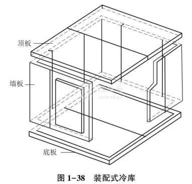 1)室內型 一般情況下這種類型的冷庫貯藏容量較小(2~20t ),安裝條件要求不高(只要滿足荷載要求),地下室、底層、樓層都能安裝。這種冷庫大多數都是采用可拆裝結構,冷庫頂、底、墻板都可拆裝,如圖1-38所示。冷庫的板縫采用偏心鉤連接,如圖1-39所示。另外也有采用a結裝配的,但這種結構拆卸時比較困難。