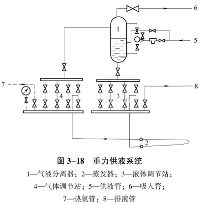 (1)對空間要求較高,供液范圍受限制。因為重力式供液依靠的是靜液柱產生的壓力,從而使供液的范圍受到限制。一般以氣液分離器為中心的作用半徑以不大于30m為宜。