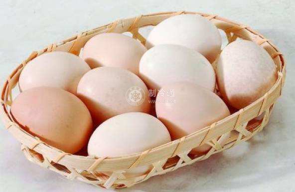 禽蛋在冷藏期間,冷藏溫度以低于0℃為好,這樣有利于保持蛋的品質。如果溫度過低會使蛋內容物凍結而膨脹,使蛋殼凍裂而損傷。可采用下列兩種方式冷藏禽蛋:溫度為-1.5~0℃,相對涅度為80%-85 %,冷藏期為4-6個月;溫度為-1.5~2.5℃,相對濕度為85%-90%,冷藏期為6~8個月。在禽蛋冷藏期間,庫溫應保持穩定均勻,在24h內波動不超過±0.5℃,以免影響蛋品質量。