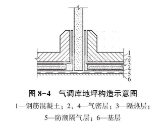 氣調庫的地坪構造與冷藏庫差不多,只是增加了一層氣密層,如圖8-4所示。