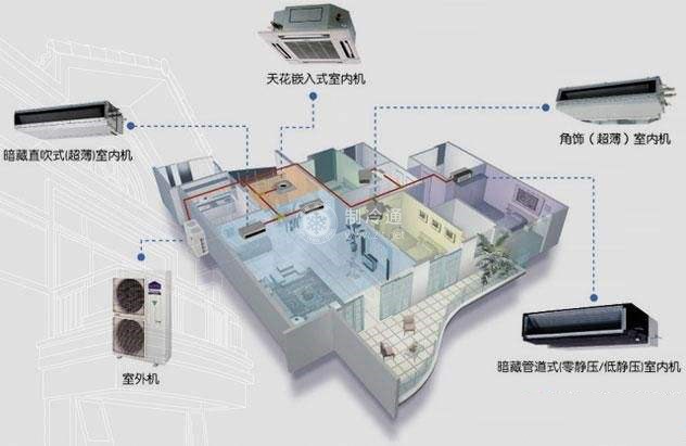 家用中央空調(diào)系統(tǒng)的組成。家用中央空調(diào)系統(tǒng)主要由三個(gè)部分組成:第一部分是為空調(diào)系統(tǒng)提供冷/熱量的冷/熱源部分,對(duì)于單冷型空調(diào),它通常是一臺(tái)制冷機(jī)組,對(duì)于冷映型系統(tǒng),它通常是一臺(tái)熱泵機(jī)組,第二部分是將冷/熱且輸送到各個(gè)需用場(chǎng)合的輸送分配系統(tǒng)。它主要由管道、載冷/熱介質(zhì)及控制分配的閥門等裝置組成;第三部分是將冷/熱量傳遞到空調(diào)空間的末端裝置,它可以是風(fēng)機(jī)盤管、散流器或是由蒸發(fā)器和風(fēng)扇組成的室內(nèi)機(jī)。