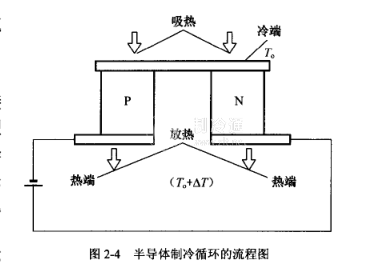 半導體制冷系統的熱電偶上下各有一個接頭。其中一個接頭電流從N型半導體流向P型半導體,由于產生電子-空穴對而導致內能的降低,溫度下降并吸收周圍環境的熱量,該接頭稱為冷端,這就是半導體制冷。另一個接頭電流反向流動,由于電子-空穴對的復合而導致內能的提高,溫度上升并向周圍放熱,該接頭稱為熱端。