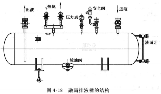 由于排出液體溫度低,融霜排液桶屬低溫設備,外面應包有隔熱層。