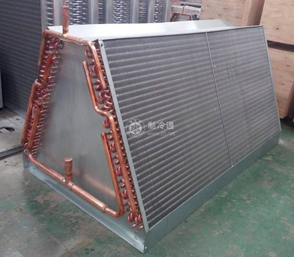 冷凝器的作用是將壓縮機排出的過熱制冷劑蒸汽冷卻后,再進一步冷凝成制冷劑液體,冷凝器是放出熱量的設備。在冷凝器中,制冷劑放出的熱量經傳熱壁面傳遞給冷卻介質。
