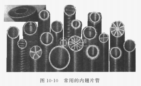 目前在管內形成翅片的方法有兩種,第一種是管內插入翅片狀插入物,第二種是拉制內翅片,如圖10-10所示。