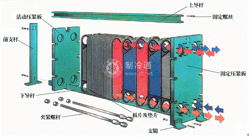 用作制冷用冷凝器的板式換熱器有全焊結構和半焊結構兩種,半焊結構僅用于氨制冷劑,全焊結構適用于各種制冷劑。