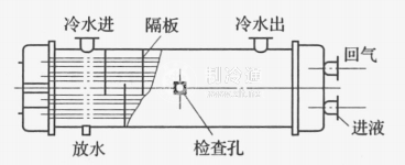 干式蒸發器的基本結構如圖11-5所示,它由殼體、封頭、管簇、折流板及拉桿等組成。節流后的制冷劑進入封頭,由封頭進入管內,在水平管內沸騰。在正常工作的情況下,殼體與傳熱管之間充滿載冷劑液體,載冷劑在管簇外縱橫向流動,換熱時集態不發生變化。