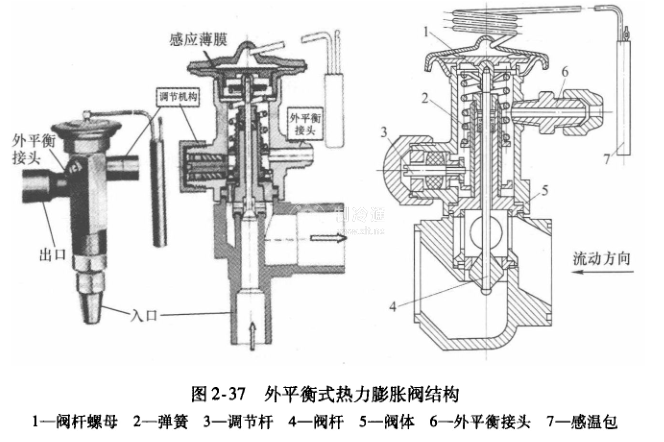 外平衡式熱力膨脹閥結構如圖2-37所示。
