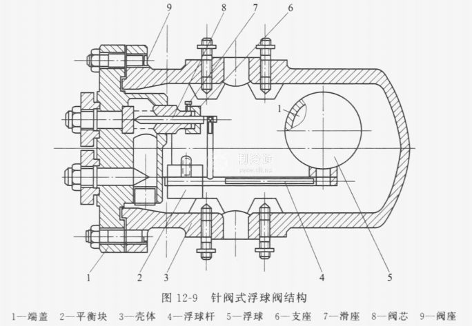 按浮子室中制冷劑的壓力,浮球閥可分為低壓浮球閥和高壓浮球閥兩類。低壓浮球閥浮子室中的制冷劑壓力為閥后壓力,安裝在中間冷卻器、滿液式蒸發(fā)器、低壓循環(huán)貯液或氣液分離器等的制冷劑管路上,用來保持這些低壓設(shè)備中的制冷劑液位。