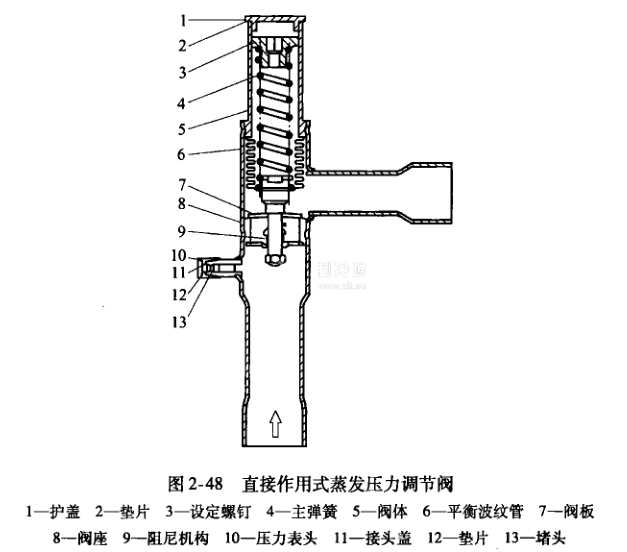 直接作用式蒸發(fā)壓力調節(jié)閥的典型結構如圖2-48所示。