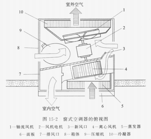 15-1為窗式空調(diào)器的內(nèi)部結(jié)構(gòu)15-2為其俯視圖。