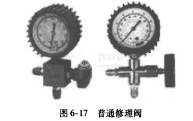 普通修理閥有三個接口,使用時壓力表右側的接口與制冷設備連接,與閥體垂直的接口與真空泵或制冷劑鋼瓶連接。