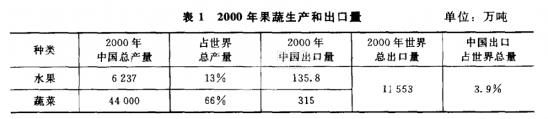 果蔬生產(chǎn)的快速發(fā)展,已經(jīng)成為農(nóng)村經(jīng)濟的支柱產(chǎn)業(yè)。雖然中國的果蔬產(chǎn)品在國際上具有一定竟?fàn)巸?yōu)勢,但是受到保鮮貯藏能力的制約。2000年果蔬生產(chǎn)和出口量如表1所示,僅占世界總出口量的3.9%