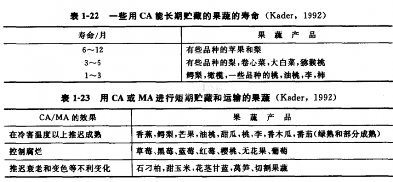 因此氣調(diào)保鮮比一般冷藏保鮮具有更好的保鮮效果。但保鮮效果與具體產(chǎn)品有關(guān)。表1-22和表1-23為一些果蔬用CAMA貯藏保鮮的效果。