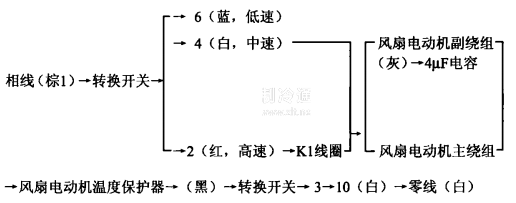 當轉換開關在高冷時,風機處于高速。轉換開關在中冷、低冷時,則風機相應處于中速、低速。