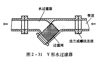 ①冷水機組進水口處必須安裝入圖2一31所示的水過濾器,用以防止水系統內的雜質堵塞板式換熱器的通道。