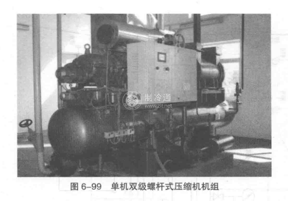 圖6-99所示為使用單機(jī)雙級螺桿式壓縮機(jī)的機(jī)組外觀圖。該機(jī)組具有以下特點(diǎn):