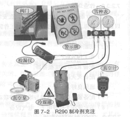 需要特別強調是,由于R290的易燃易爆性,絕對不允許用R290制冷劑對系統進行清洗和排空氣。