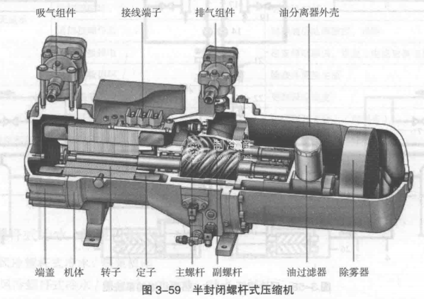 圖3-59為半封閉螺桿式壓縮機的結構圖。