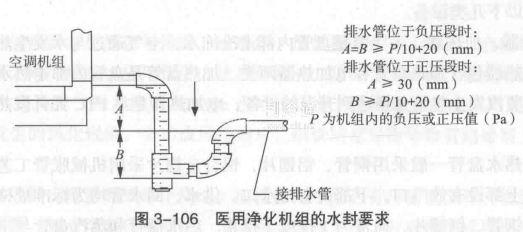 應特別注意,醫用凈化機組的水封必須滿足圖3-106的要求,并保證水封的密封性能。