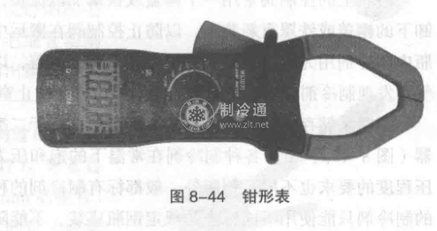 鉗形表是應用十分廣泛的測量儀器(圖8-44),是制冷空調(diào)設備電氣故障檢修中最常用的工具,它可以測量交流或直流電壓、交流電流、電阻等。
