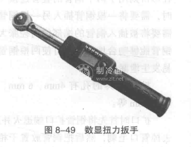 處理,LCD顯示屏按預先設定的工作模式準確顯示扭矩值。當施加的扭矩達到設定值時,扳手會發出“卡塔”聲響或者扳手連接處折彎一點角度,而且會通過數字顯示屏或者LED燈來提示使用者(8-49)。
