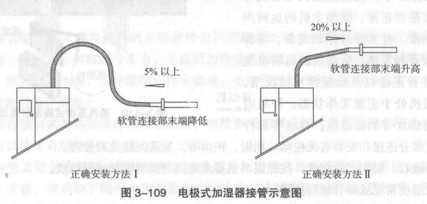 ④電極式加濕器。電極式加濕器可使用井水、工業水或來自制冷回路的水,但不能使用去離子水、蒸餾水、軟化劑處理水等,這可能導致霧沫,影響機組運行。不要在水里添加消毒劑或防蝕化合物,這些都是潛在的刺激物。對水的一般要求主要包括:電導率75~1250μs/cm、硬度不應大于40德國度(相當于400ppm的CaCO3,否則必須加裝凈水器)、供水壓力0.1~0.8MPa、供水溫度1~40℃等。