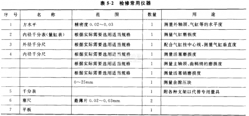 ③準備檢修材料 檢修前準備好所需用的材料。包括各種用途的布料,如紗布、布、帆布以及清洗機件用的舊布、油料,包括汽油、煤油、冷凍油.各種型號的填料,粗、細研磨砂,石棉紙、硬鉛、開口銷、熔絲、油石、汽筒、玻璃板,以及檢修機器所需用的特殊材料。
