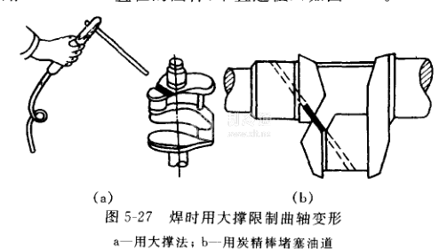 焊時將焊接部位預熱至350-450℃,油道用炭精棒堵塞,夾緊在適當的專用焊架上,以低碳鋼焊條用電焊熔接。焊接過程中曲軸溫度下降,應再次加熱繼續焊接,焊后立即在500-600℃下熱處理。
