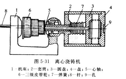 ②離心澆鑄法離心澆鑄是在專門的一個旋轉夾其中完成的,見圖5-31所示。