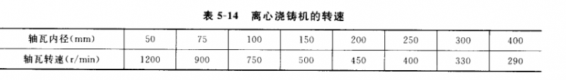 合金從澆口滾到旋轉中的軸瓦的鋼背表面,以摩擦力和離心力的作用在表面貼敷一層,直至結成固體。這種方法的優點為:合金晶粒細致,韌性增高,合金層緊密,無氣孔砂眼,耐磨性好,磨擦系數低,但要特別注愈轉速,其轉速與軸瓦直徑有關,見表5-14。轉速過快會發生偏折現象。