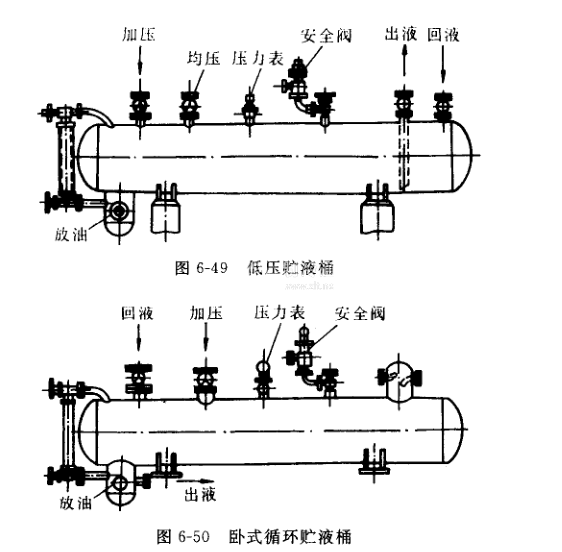 圖6-48為高壓貯液桶,相類似的還有低壓貯液桶(圖6-49)及循環貯液桶(圖6-50)。