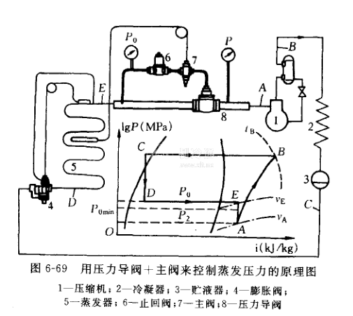 圖6-69為壓力導閥+主閥的形式用來控制蒸發壓力的原理圖。