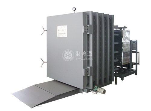 ①關閉倉門,開啟電源。②開啟制冷壓縮機組。依據果蔬裝載量,可2臺同時開啟或單獨開啟。通常5噸以上的裝載量需開啟2臺壓縮機。③開啟壓差風機。依據堆碼位置,可2組同時開啟或單獨開啟。通常只要壓差通風裝置前有果蔬堆碼就需開啟該組壓差風機。④當任意一個果蔬溫度顯示到達最適儲藏溫度范圍的下限后,關閉冷風機。⑤等待,段時間,當所有溫度顯示都回升至最適儲藏溫度范圍上限后,開啟冷風機。⑥重復以上④、⑤操作,直至所有果琉溫度顯示在最適儲藏溫度范圍內,關閉壓縮機,冷風機和壓差風機,該批次預冷結束。