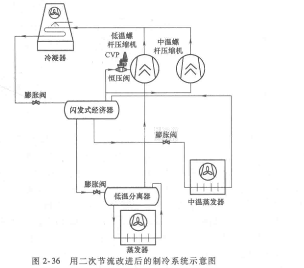 核心提示:如果該系統需要增加一套速凍系統,那么在圖2-36的基礎上經過優化變為圖2-37所示的制冷系統。