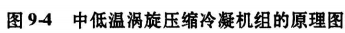 圖9-4是該公司的中低溫渦旋壓縮冷凝機組的原理圖,從圖可知渦旋式壓縮冷凝機組在渦旋壓縮機中增加了中間噴射裝置,系統(tǒng)中也增加了經(jīng)濟器。數(shù)碼渦旋壓縮冷凝機組可在10%~100%能量范圍內(nèi)調(diào)節(jié)。